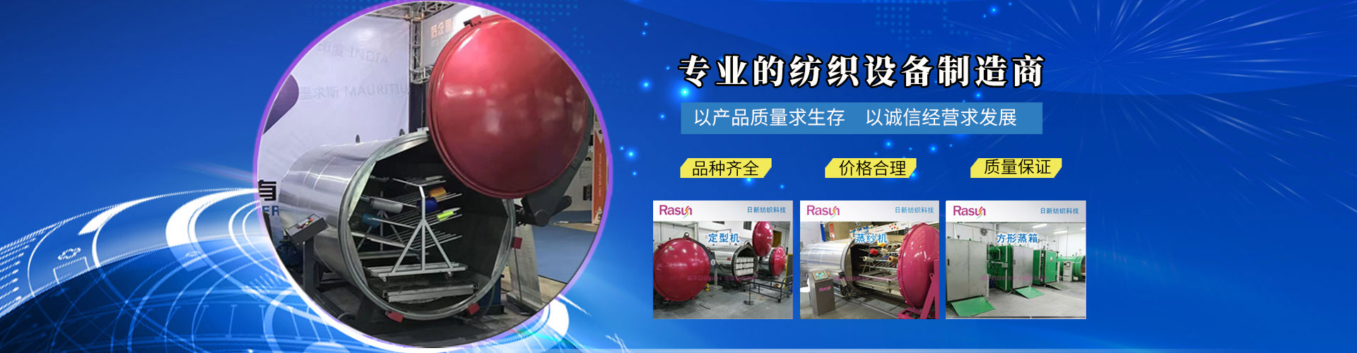 江蘇日新紡織科技有限公司是一家集科研、開發(fā)、生產(chǎn)、銷售、服務(wù)為一體專業(yè)設(shè)計制造蒸紗機,蒸紗鍋,蒸箱,定型機,襪子定型機,紗線定型機的的廠家,蒸紗機生產(chǎn)設(shè)備精良,蒸紗鍋設(shè)計工藝 ,蒸箱檢測手段齊全,紗線定型機技術(shù)雄厚,高品質(zhì)的蒸箱,蒸紗鍋,蒸紗機,紗線定型機產(chǎn)品,在國內(nèi)外享有盛譽。公司坐落于江蘇省金湖縣建設(shè)西路413號,處于南京、揚州、淮安一小時都市經(jīng)濟圈。公司本著“誠信之本”的經(jīng)營理念,在中國及全球地區(qū)不斷開拓新市場,熱誠與社會各界有識之士合作,構(gòu)成一個良好的營銷體系。為您提供專業(yè)的一條龍服務(wù)。愿江蘇日新人能感染您,推動您,走入永遠屬于我們的天空中去。 + MORE